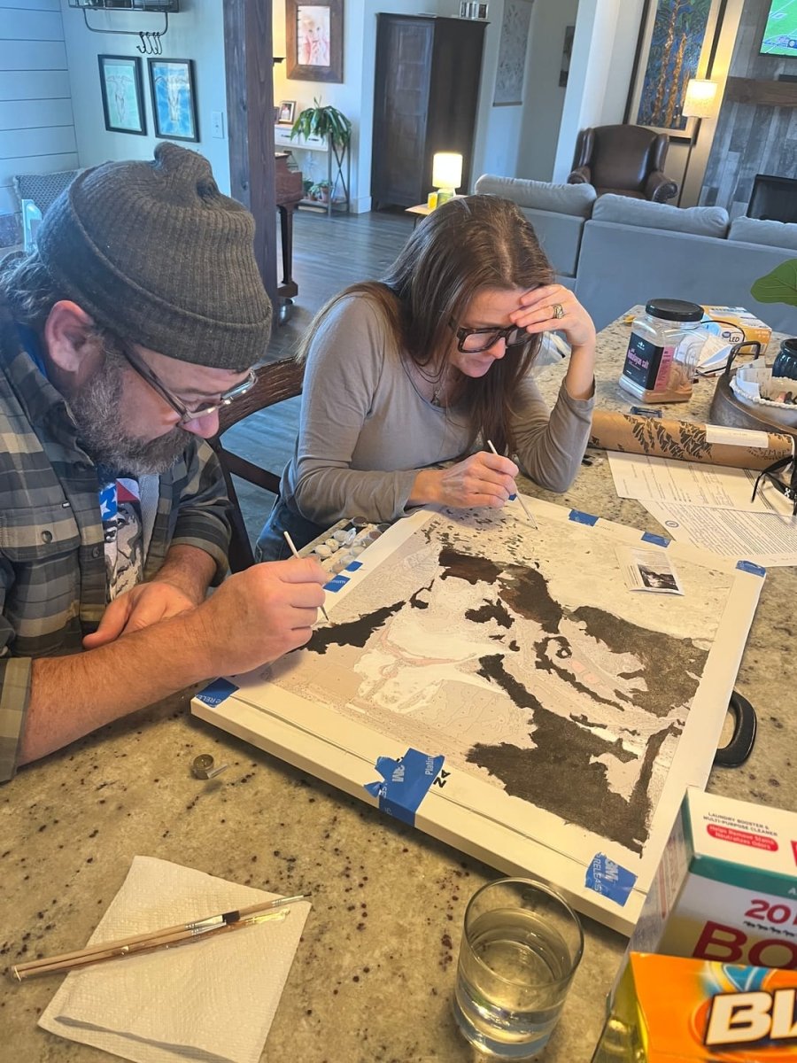 Most people complete a 9 x 12 in piece in 6–12 hours total, usually over a few evenings. Paint dries quickly, so you can work in short, relaxing sessions.